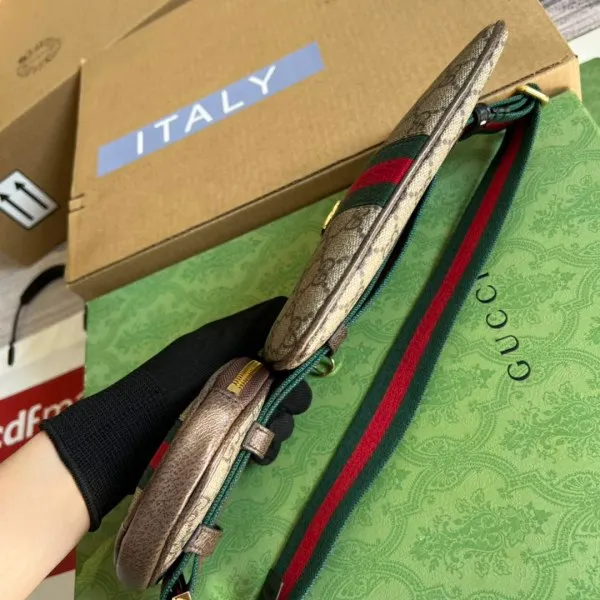 - Details: Golden finishes and the iconic Double-G logo add a touch of sophistication to the belt. The accessories come with a zipper closure, ensuring the safety of your belongings, while the belt features a buckle closure.