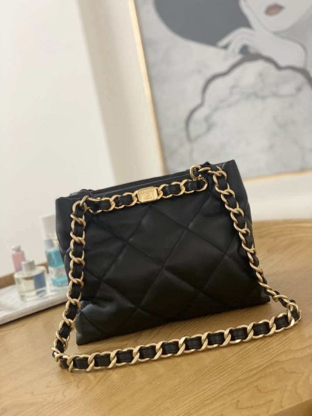 Chanel A68200 Large Chain Shopping Bag Black Gold