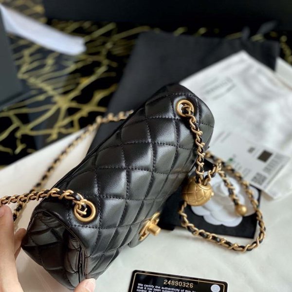 Chanel AS3205 Mini Flap bag lambskin gold Black