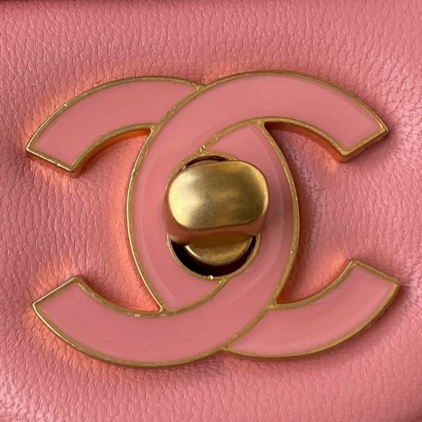 Chanel A81197 Mini Flap Lambskin Enamel & Gold-Tone Metal Pink