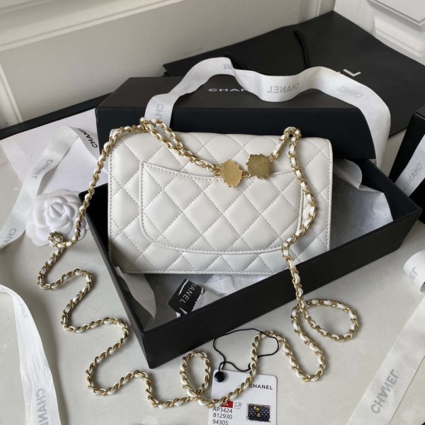 Chanel A88632 WOC 19 Chain Wallet Bag White Lambskin Gold
