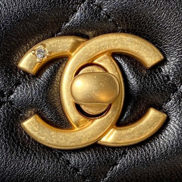 Chanel A81197 Mini Flap Calfskin Enamel & Silver-Tone Metal Black