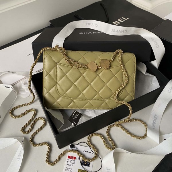 Chanel AP3043 WALLET ON CHAIN Lambskin & Gold-Tone Metal Green