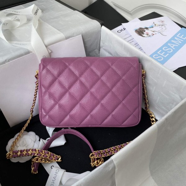 Chanel AP3047 FLAP Phone Holder With Chain Black Lambskin