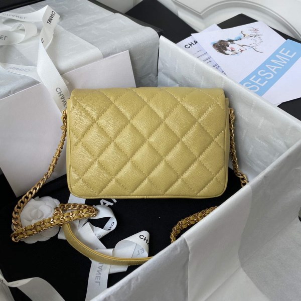 Chanel AP3047 FLAP Phone Holder With Chain Green Lambskin