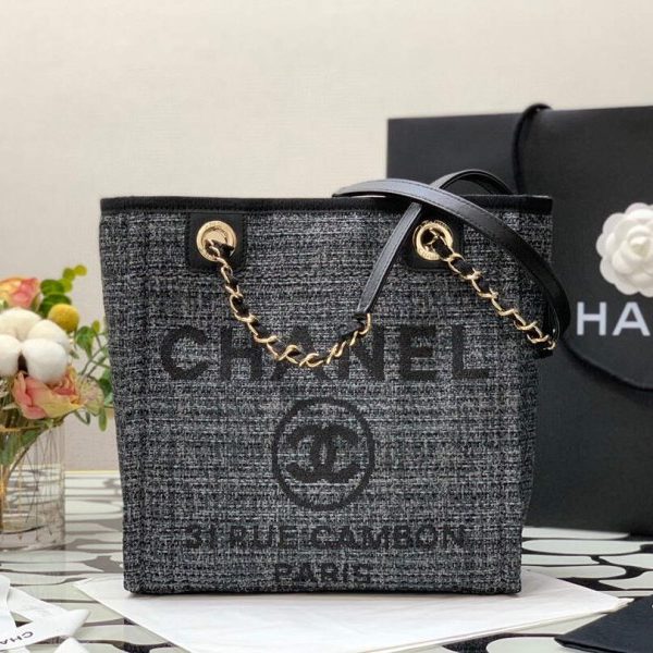 Chanel Shopping Bag Tote AS3261 Black with Glod