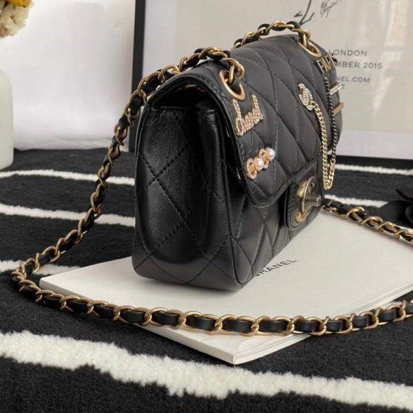 Chanel AS2563 Flap Bag Lambskin Gold Metal Black