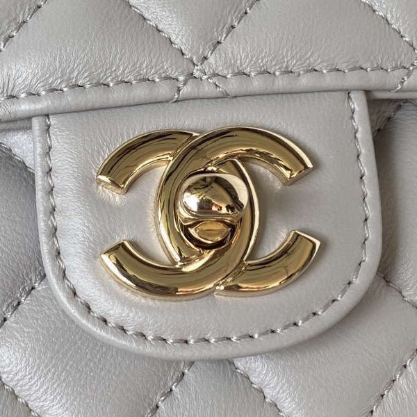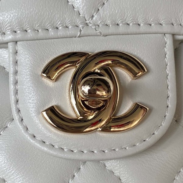 Chanel AS3041 Flap Classic Bag CF Camellia Lambskin White Gold