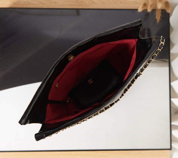 Chanel AP3020 Clutch with chain lambskip gold tone metal Black