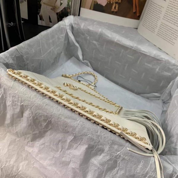 Chanel AP3020 Clutch with chain lambskip gold tone metal White
