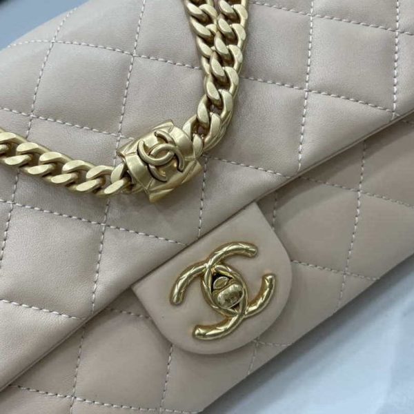 Chanel AS2431 Mini flap Apricot with Brown Lambskin bag with top handle Gold
