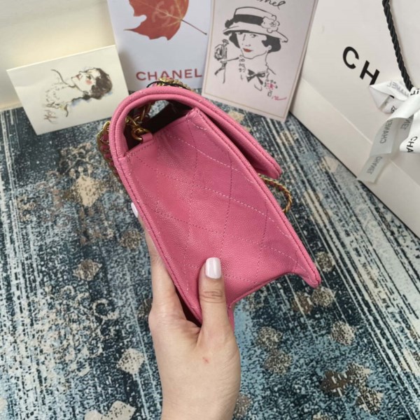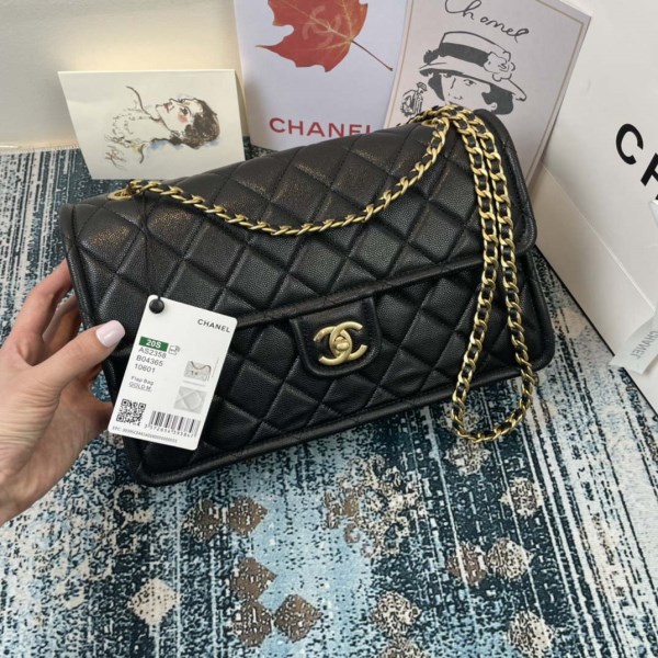 Chanel A58600 Large Classic Handbag Grained shiny Calfskin Apricot Gold