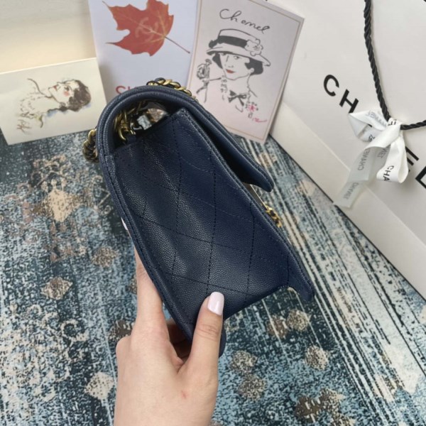 Chanel A50995 Matelasse GST Chain Tote bag caviar Calfskin leather Navy Blue Gold