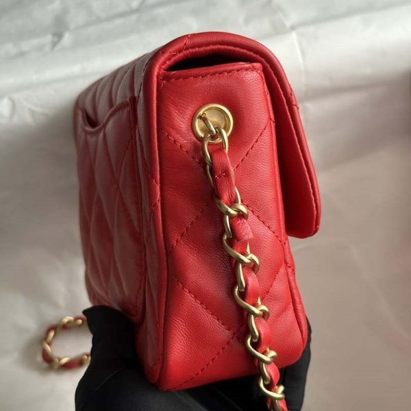 Chanel AS2431 Mini flap Wine Red Lambskin bag with top handle Gold