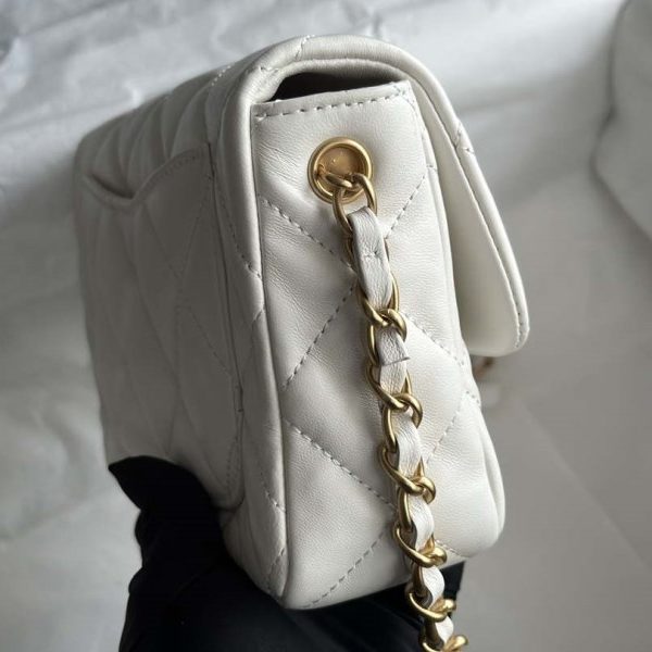 Chanel AS2431 Mini flap White Lambskin bag with top handle Gold