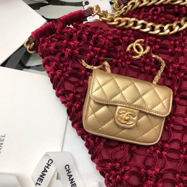 Chanel AS2431 Mini flap Pink with Green Lambskin bag with top handle Gold
