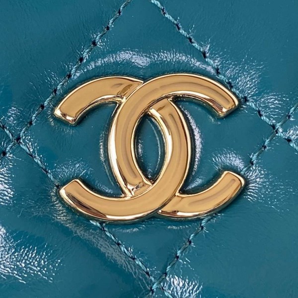 Chanel 22 Handbag Shiny Calfskin AS3261 Green Gold Metal