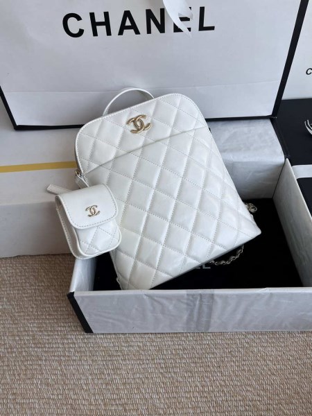 Chanel AS3970 Flap Bag with top handle Lambskin gold tone metal White