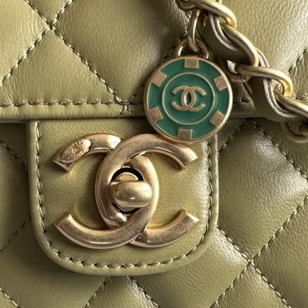 Chanel AS2215 Mini Flap Bag with Top Handle Bag Grained Calfskin Green