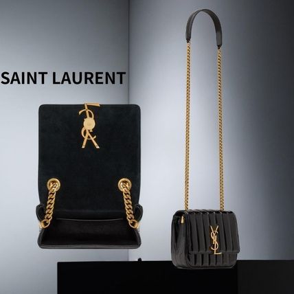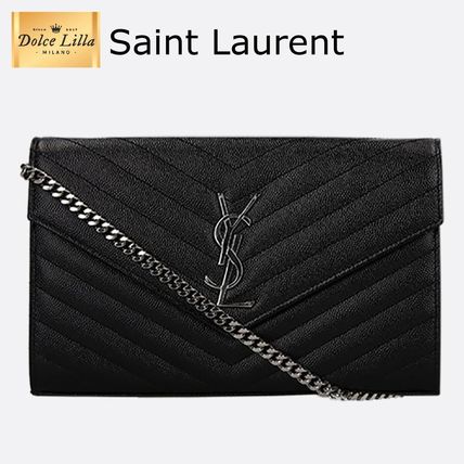 Saint Laurent Monogram Calfskin 2WAY Chain Plain Leather Party Style