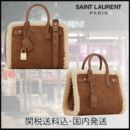 Saint Laurent SAC DE JOUR Fur Lambskin 2WAY Bi-color Plain Elegant Style Crossbody