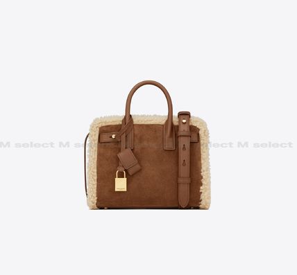 Saint Laurent SATCHEL Casual Style Calfskin Blended Fabrics Plain Leather