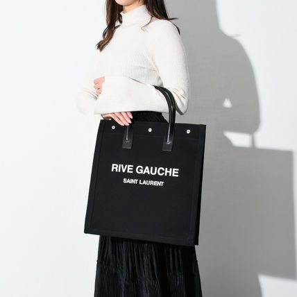 Saint Laurent CABAS RIVE GAUCHE Casual Style A4 Plain Office Style Logo Totes (632539FAAVR)