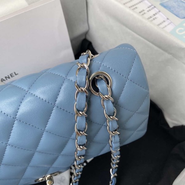 Chanel A01113 Flap Handbag Classic Bag Grained shiny Calfskin Lake Blue Gold