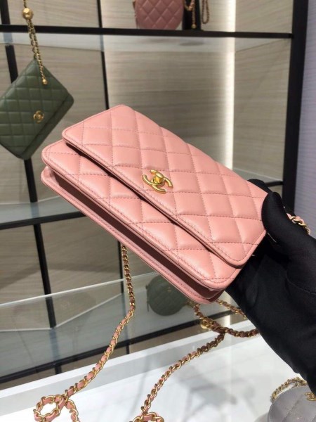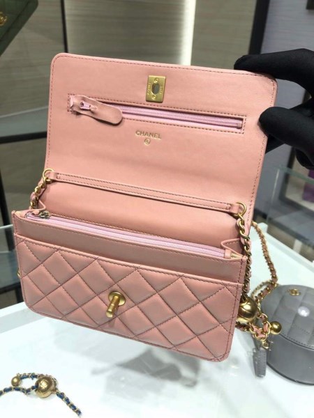 Chanel A81193 Mini Vanity with chain Calfskin Slivery Pink