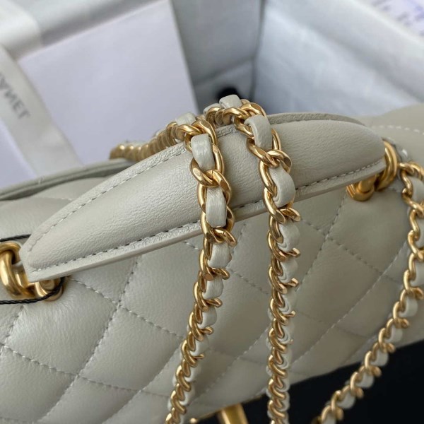Chanel 3475 Small HOBO Handbag Lambskin & Gold-Tone Metal White