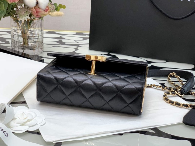 Clutches with Chain of the Cruise 2022/23 collection: Pouch, lambskin & gold-tone metal, black on the CHANEL official website.