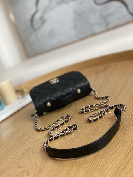 Wallets on Chain of the Fall-Winter 2023/24 Pre-Collection collection: Wallet on Chain, lambskin, imitation pearls, strass & gold-tone metal, white on the CHANEL official website.