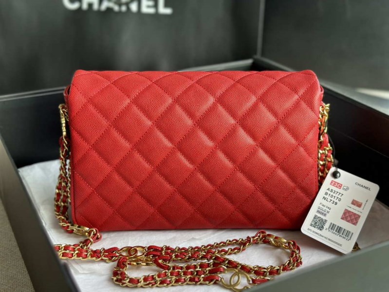 Chanel AS2210 Flap Bag With Crystal Pearls Chain Calfskin Wine Red
