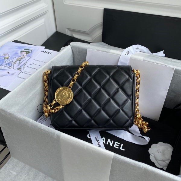 Flap Bags of the Fall-Winter 2022/23 Pre-Collection collection: Small Flap Bag, Calfskin& gold-tone metal, black on the official website