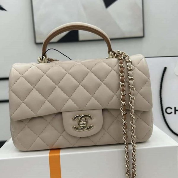 Chanel 22 Handbag Shiny Calfskin Gold AS3261 White with Silver Logo Original price was: $840.00.Current price is: $338.00.