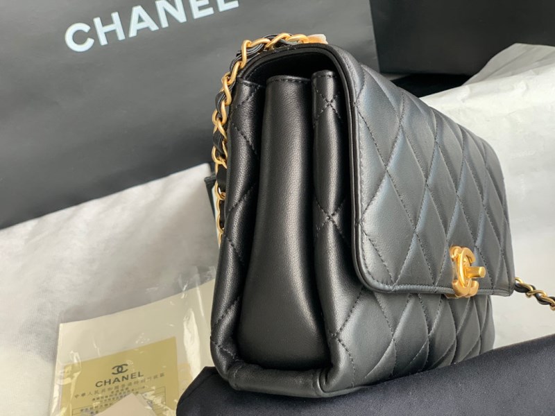 Chanel AS3737 Mini Flap Bag Lambskin Enamel & Gold-Tone Metal Black