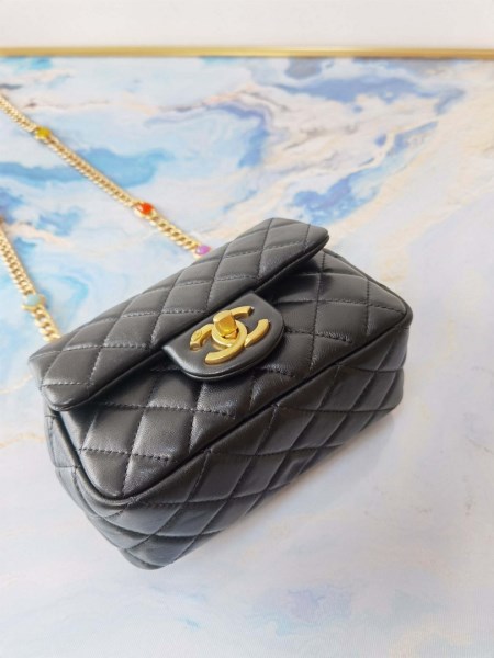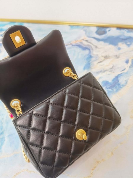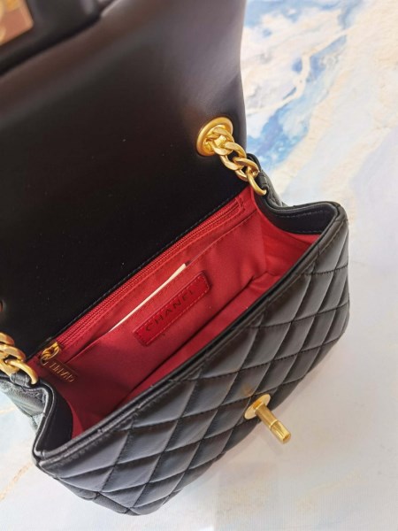 Flap Bags of the Spring-Summer 2023 pre-collection collection: Small Flap Bag With Top Handle, shiny calfskin & gold-tone metal, black on the CHANEL official website.