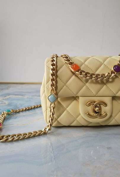 Flap Bags of the Spring-Summer 2023 pre-collection collection: Small Flap Bag With Top Handle, shiny calfskin & gold-tone metal, black on the CHANEL official website.