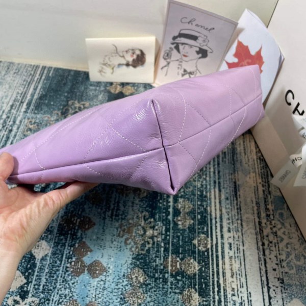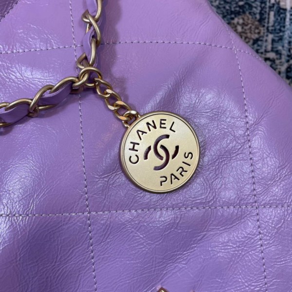 Backpacks of the Spring-Summer 2023 pre-collection collection: Small Backpack, grained shiny calfskin & gold-tone metal, lilac on the CHANEL official website.