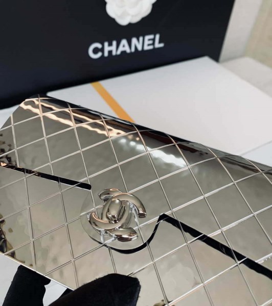 • Grey lenses with all-over mirror-effect CC logo. Adjustable nose pads branded with the Chanel