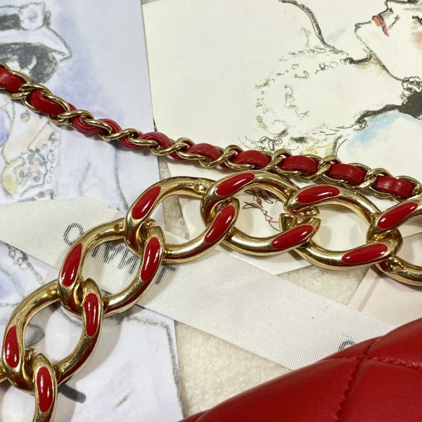 Chanel AS2431 Mini flap bag with top handle Calfskin Red