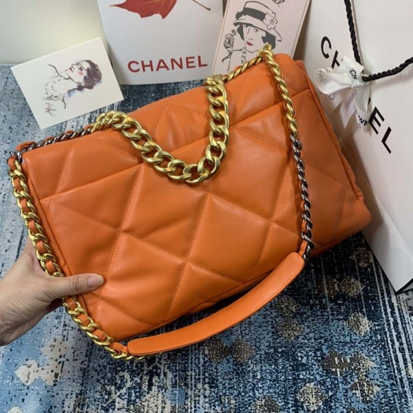 Hobo Bags of the Spring-Summer 2022 collection: CHANEL 22 Handbag, shiny calfskin & gold-tone metal , coral pink on the CHANEL official website