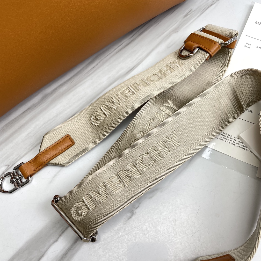 • Wide adjustable and removable shoulder strap in GIVENCHY canvas jacquard with leather details and metal ring.