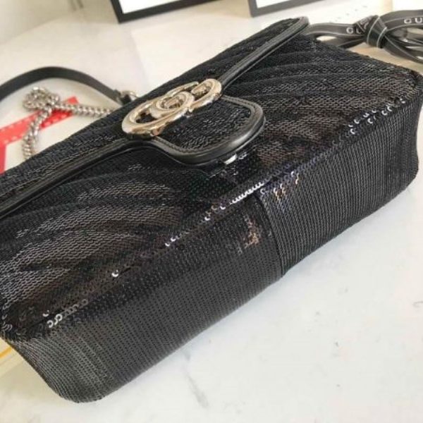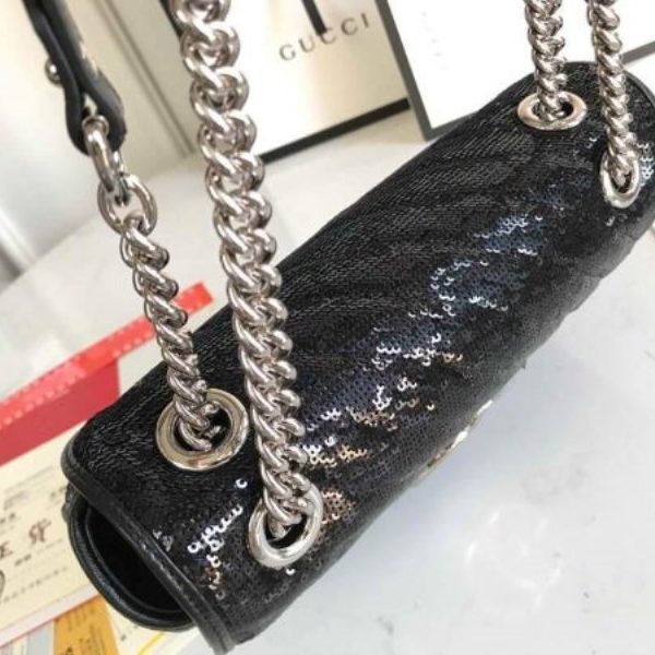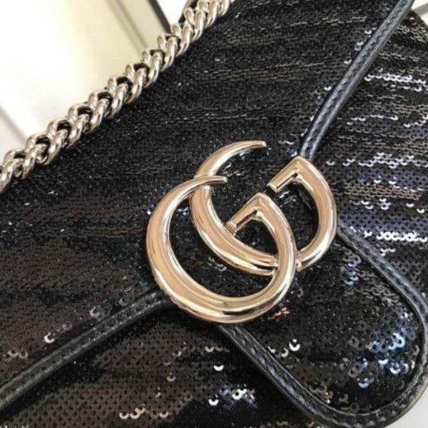 Gucci 443497 GG Marmont Small Shoulder Sequin Bag Black