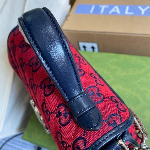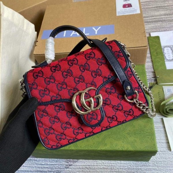 Soft shades appear throughout the latest collections, adding a whimsical feel. The GG Marmont bag is presented in diagonal matelass?? quilted leather in soft shades of butter and blue. The mini top handle’s distinct softly structured shape is outlined in black piping, highlighting its flap closure.