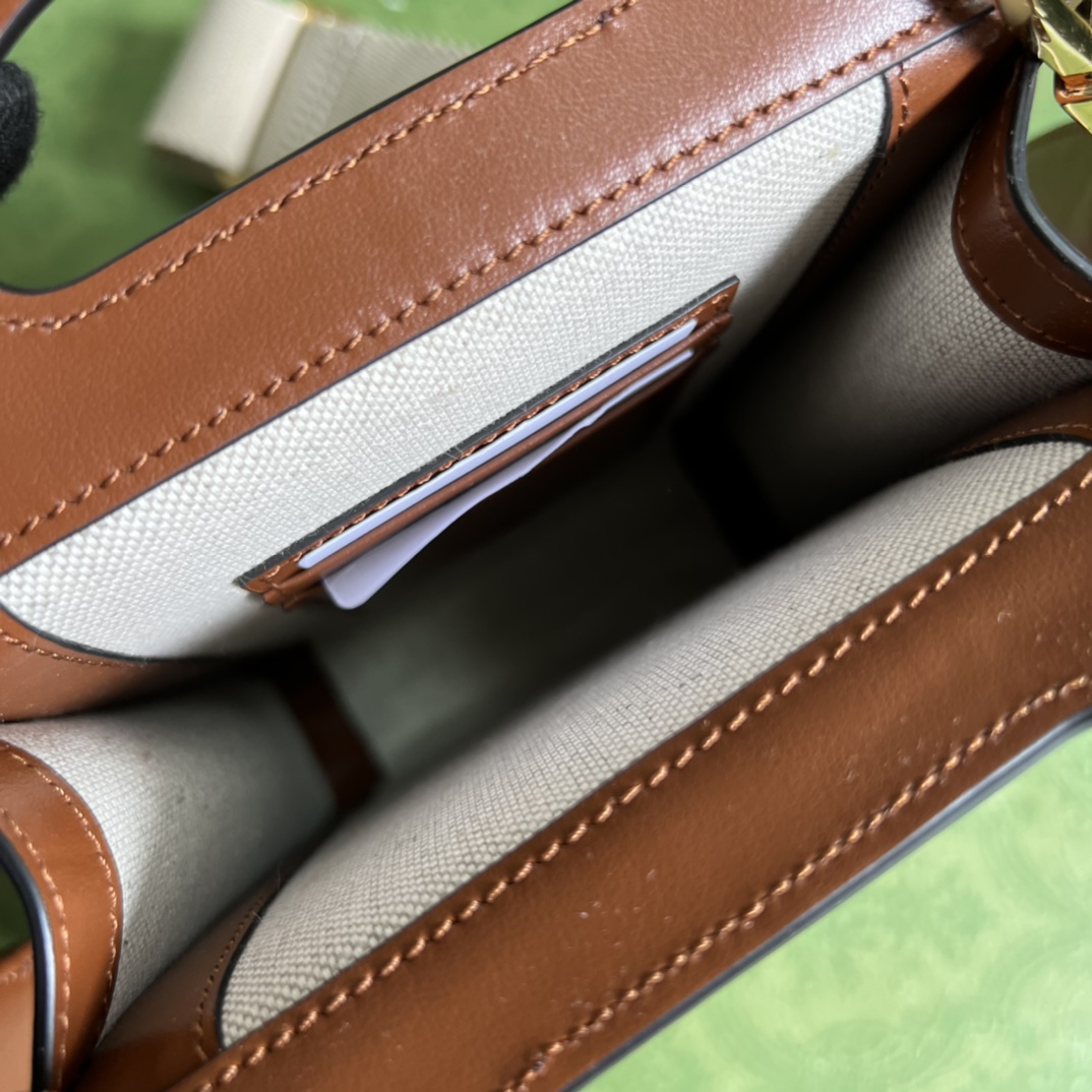 • Matelass?? leather is a signature material of the House, thanks to its super soft finish. The textured GG motif defines a selection of small leather accessories, including this light brown top handle mini bag. The Double G hardware decorates the front, continuing the logo feel of the design.