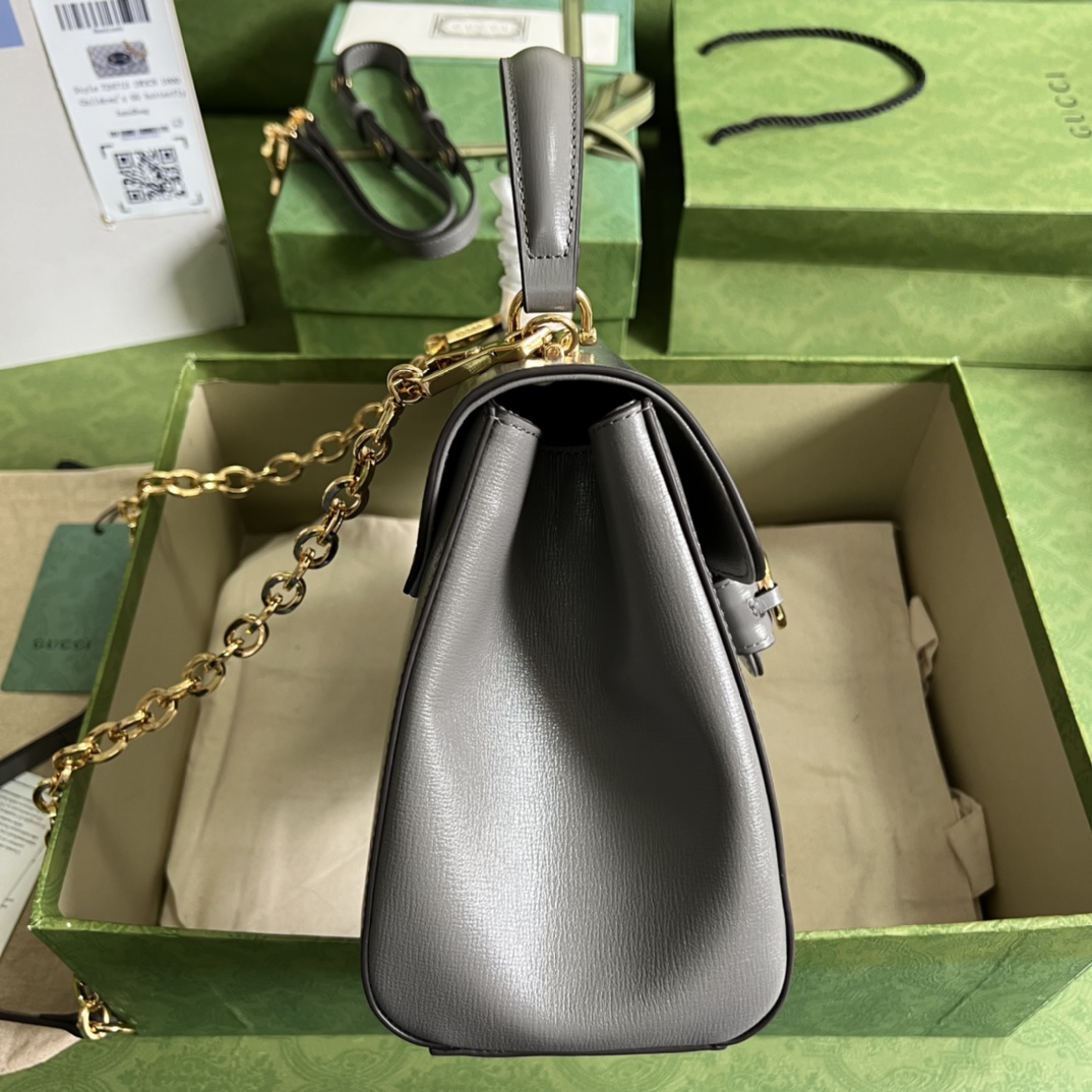 • The Gucci Horsebit 1955 is introduced in grey leather and a large size. The collection unifies details first introduced on the original bag that inspired the line from over six decades ago with a modern spirit, highlighting the Horsebit. Part of Gucci??s genetic code, the double ring and bar design has been established as one of the most distinctive elements among the House symbols borrowed from the equestrian world.