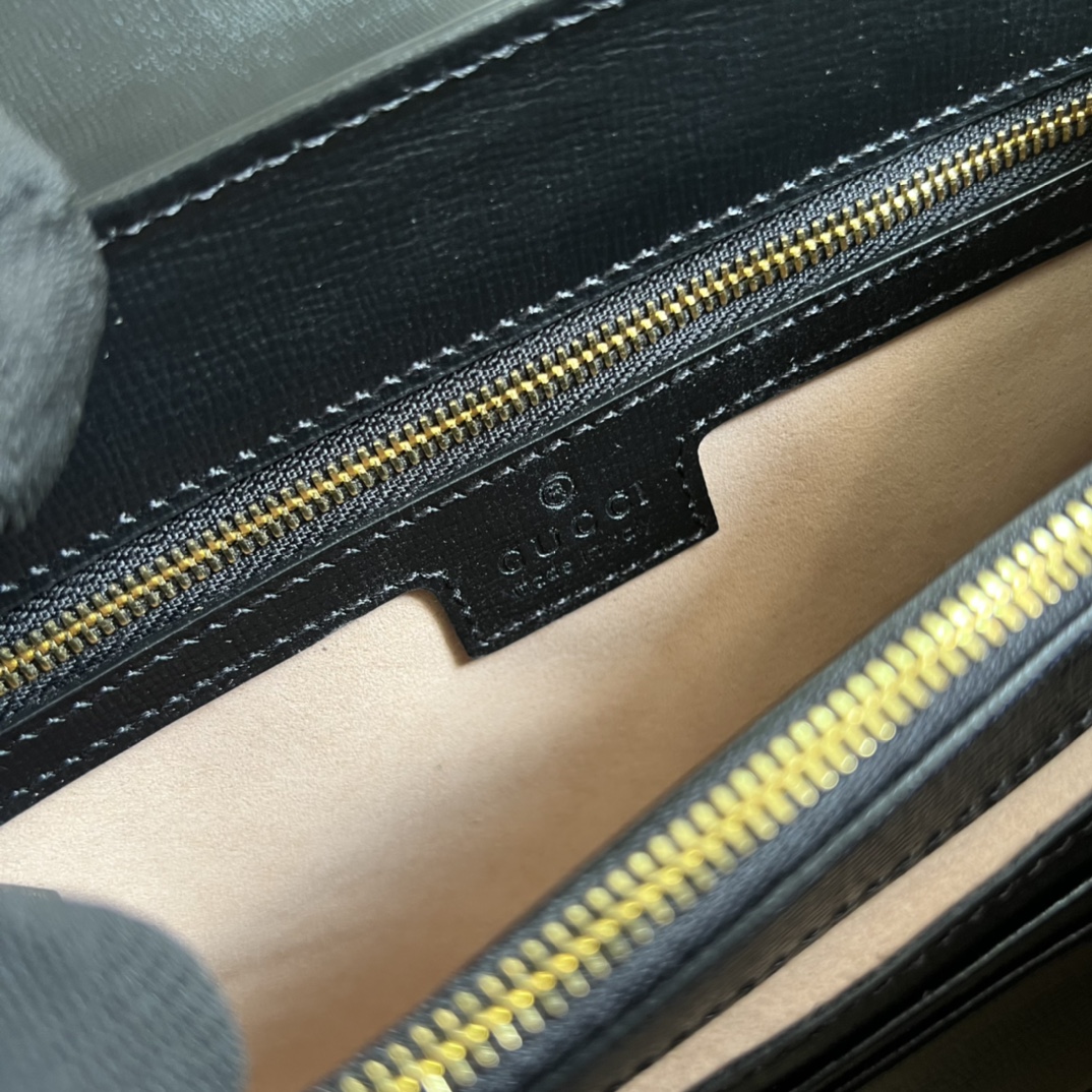 • The Gucci Horsebit 1955 is introduced in black leather and a large size. The collection unifies details first introduced on the original bag that inspired the line from over six decades ago with a modern spirit, highlighting the Horsebit. Part of Gucci??s genetic code, the double ring and bar design has been established as one of the most distinctive elements among the House symbols borrowed from the equestrian world.