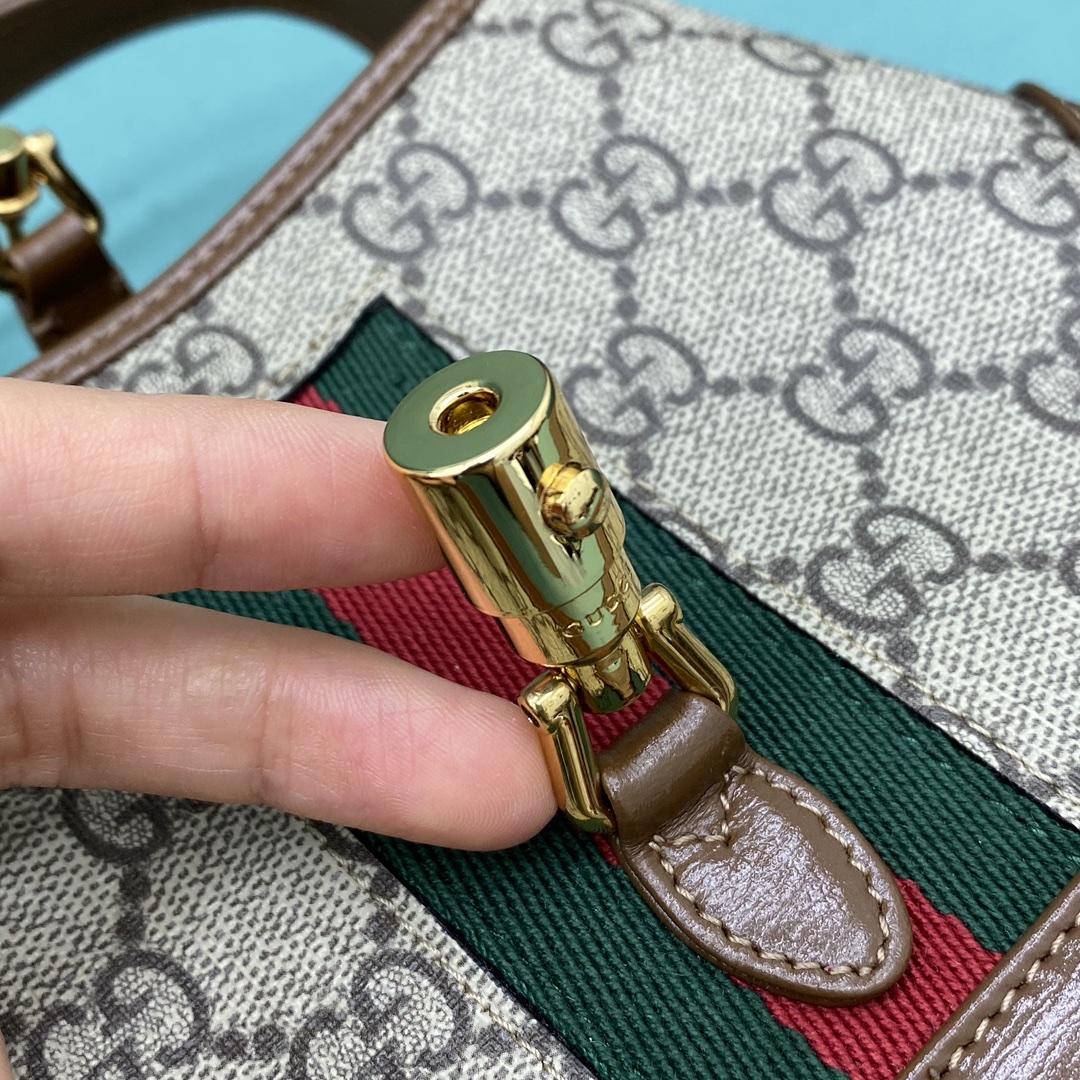 • The reintroduction of the Jackie bag in a mini size for Fall Winter 2020 presents a new take on a historical Gucci icon. Brought back to the forefront, the recognizable shape is presented in GG Supreme canvas and enhanced with an additional, detachable shoulder strap. Attached to the bag with a buckle closure, the second strap adds a contemporary feel to the archival style, providing new ways to wear??from top handle, shoulder to cross body. Pieces with versatile ways to wear and style embrace each person who is part of the House??s individual spirit. The Jackie 1961: available exclusively in Gucci stores and on Gucci.com