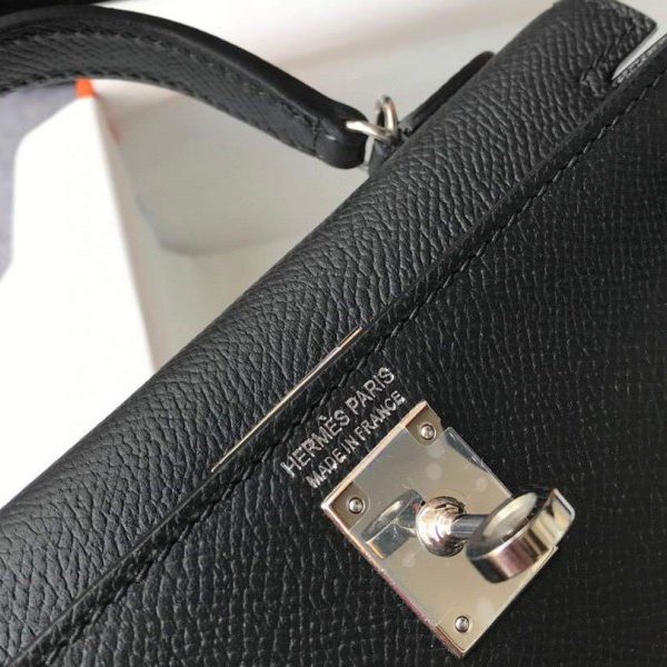Hermes Kelly Bag Hermes 19CM Epsom Shoulder Mini Bag Black Silver buckle 20456
